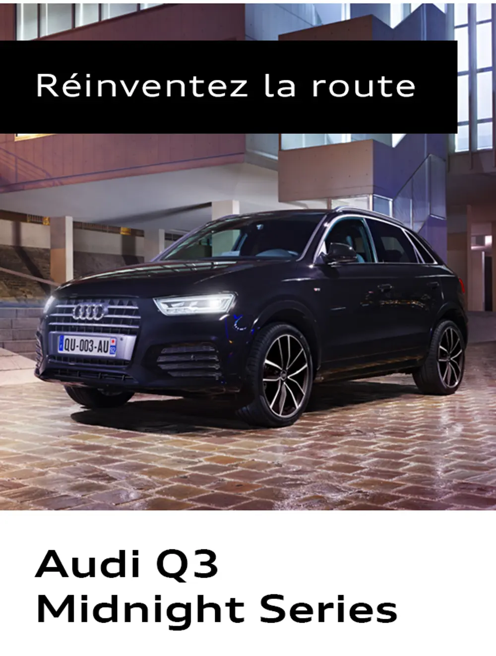 Rendez-vous dans votre concession BYmyCAR pour essayer les modèles A1, A3 ou Q3 Midnight Series.