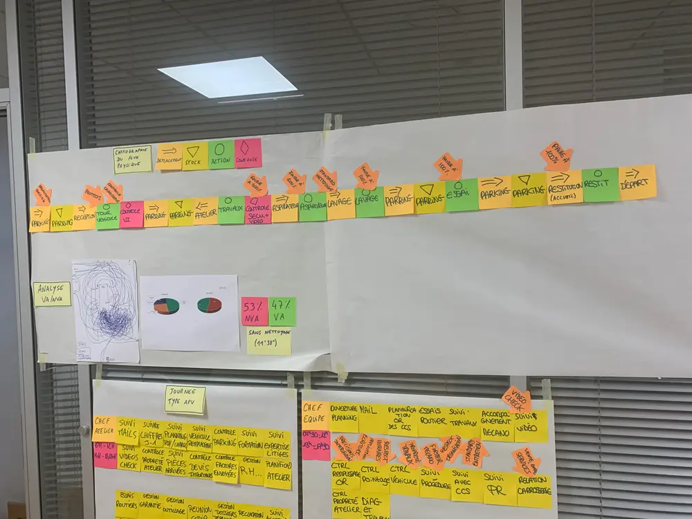 Ensemble, ils ont identifié les principales opportunités d’amélioration comme : la gestion de la production ; augmenter la satisfaction client ; réduire le temps perdu au lavage ; organiser le parking …
