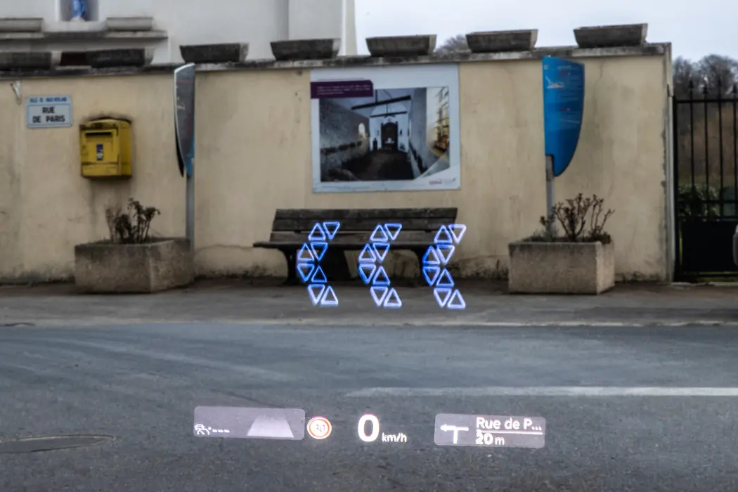L’affichage tête haute à réalité augmentée projette les informations utiles tel que les flèches directionnelles de votre itinéraires ou les limitations de vitesse dans la zone ou vous circulez directement sur le pare-brise dans votre champ de vision.